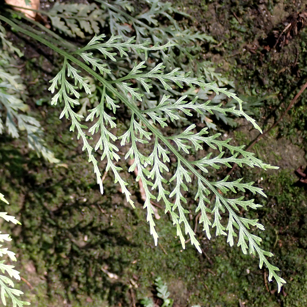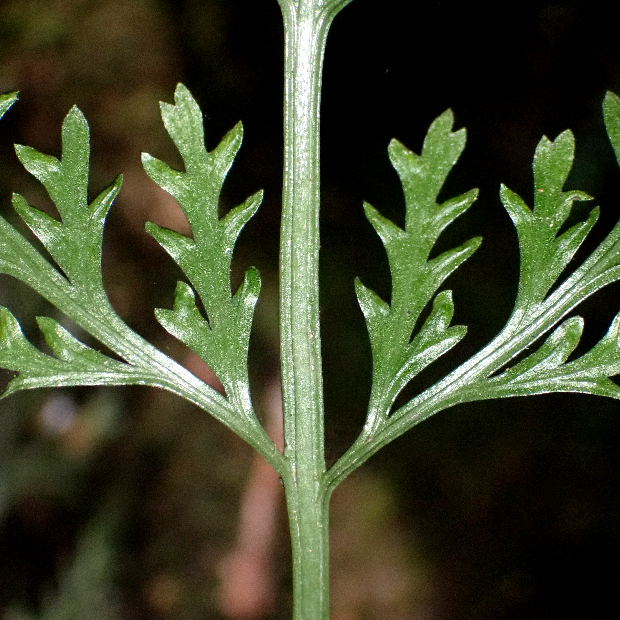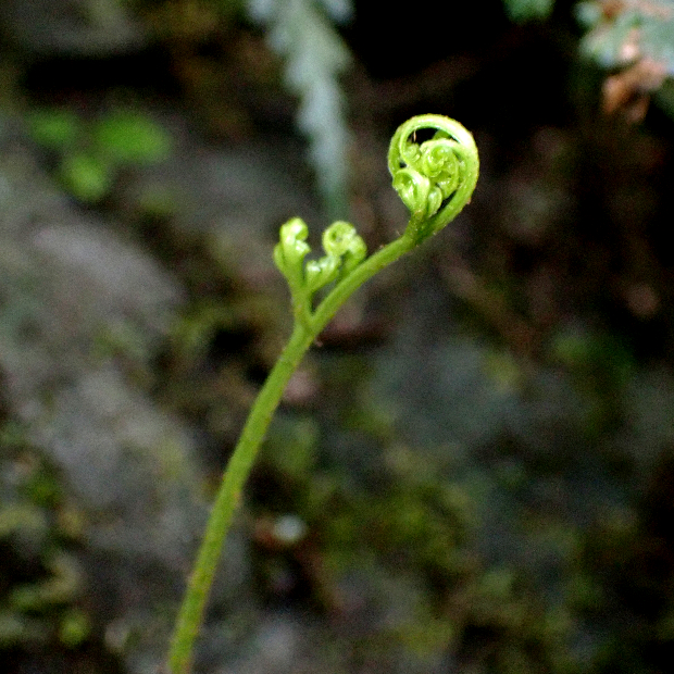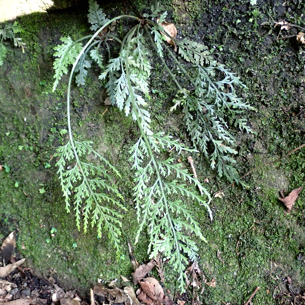 暖かい地域の岩の上などに生えるシダ。 葉はやや厚みがあって、 やわらかいです。 小さな切れ込みごとに胞子のう群をつけます。 名前の神崎(こうざき)はどこの地名かはっきりとわかっていません。