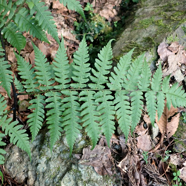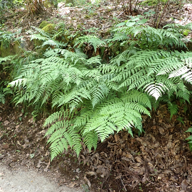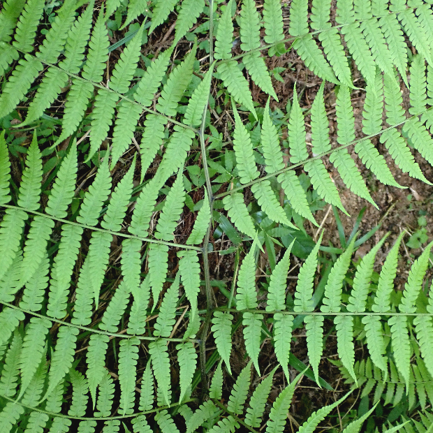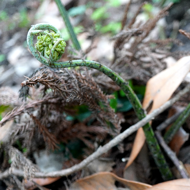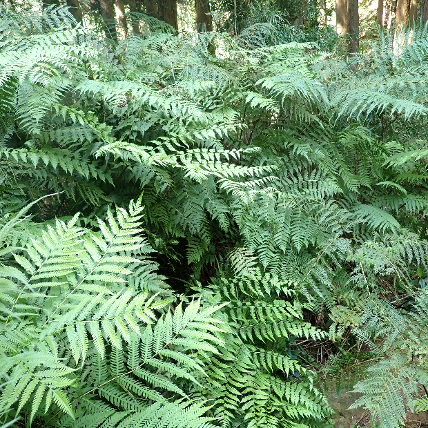 林内に生える巨大なシダです。 葉はくすんだ緑色をしていて、 草っぽくてやわらかめです。 近い仲間のヒカゲワラビよりもさらに大きく、 いかにも鬼という風格です。