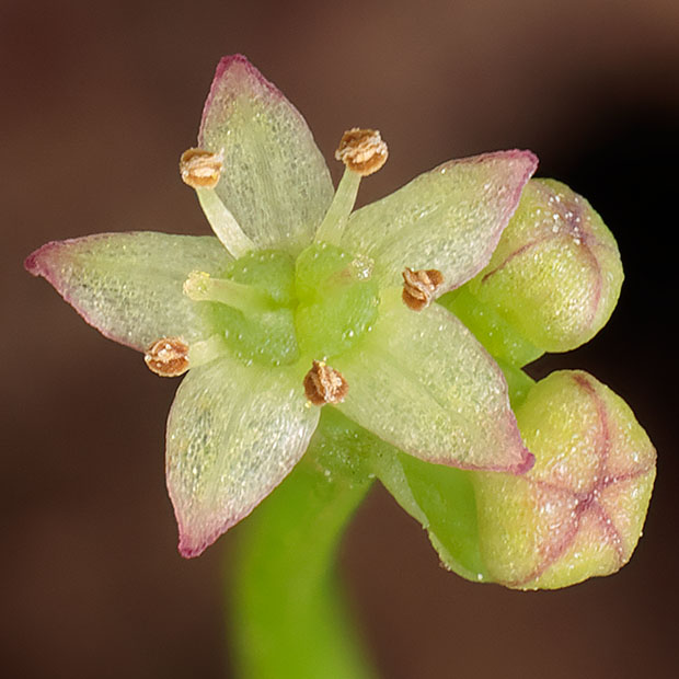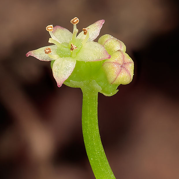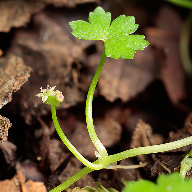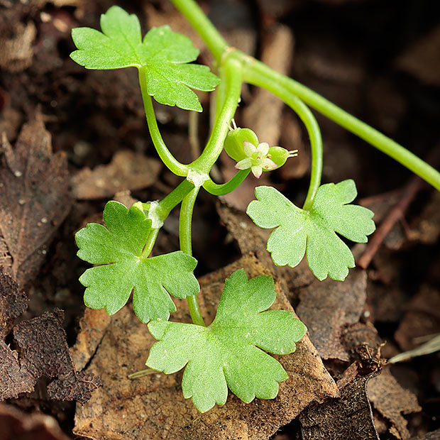 落ち葉の間やコケと一緒に生えています。 葉をみつけたら、 小さくて目立たない花を探してみましょう。 牧野富太郎が学名をつけました。