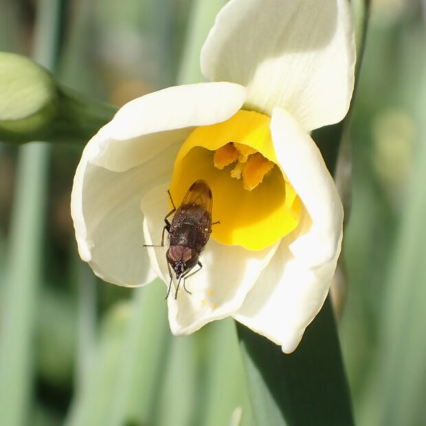 スイセンの花にやって来る。