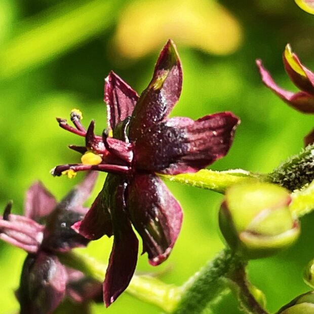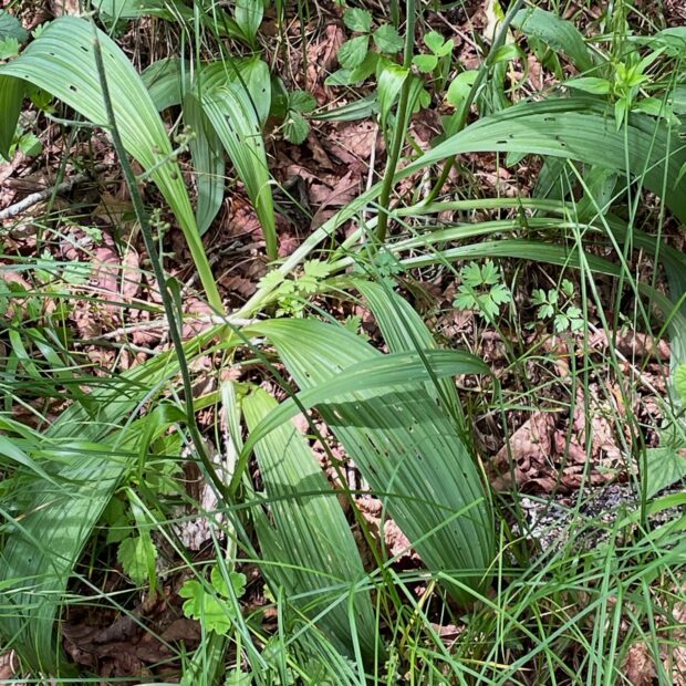 葉は茎の下部につき、 長さ20~30センチの幅広で、 縦に筋がある。 葉の基部が鞘状に茎を包み、 それが腐ると シュロ の毛のようになることから、 シュロソウと命名されました。