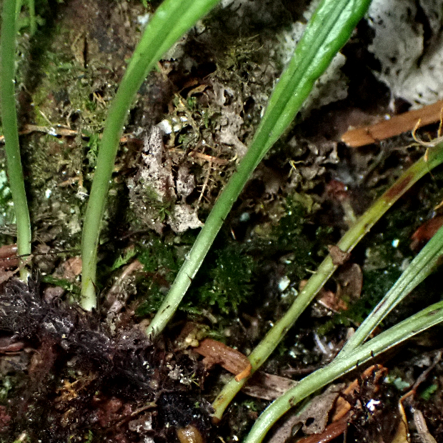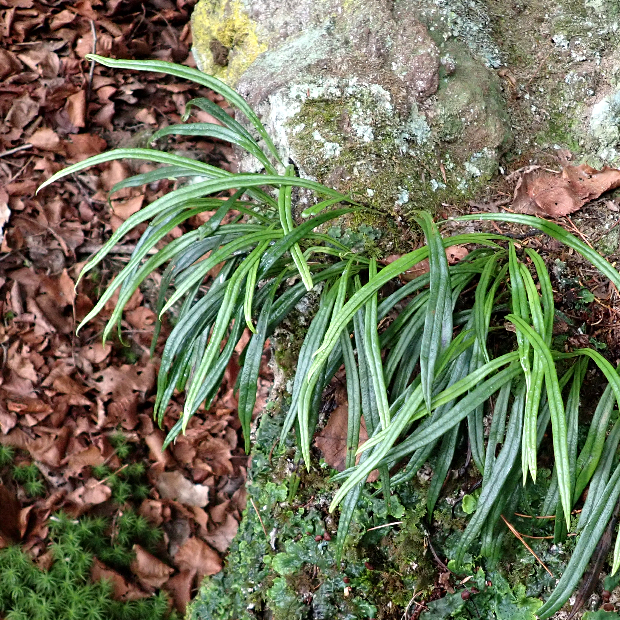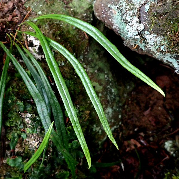 本州中部の涼しい山地に生えるノキシノブの仲間のシダ。 葉はノキシノブより細長く伸び、 根茎が長めに地面をはいます。