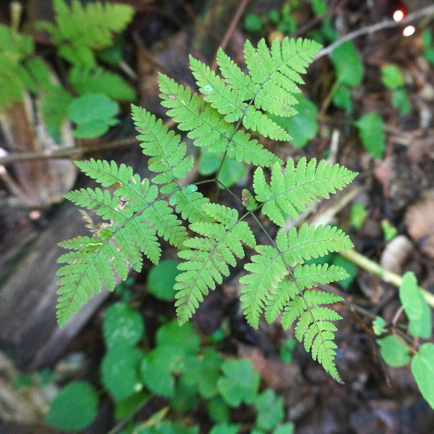 涼しい山地に生える小さめの三角形のシダ。 葉はやわらかくてなよなよしています。 ウサギの名前の由来は、 一説には葉軸の関節部分の切り口の形がウサギの口に似ているからであるとされています。