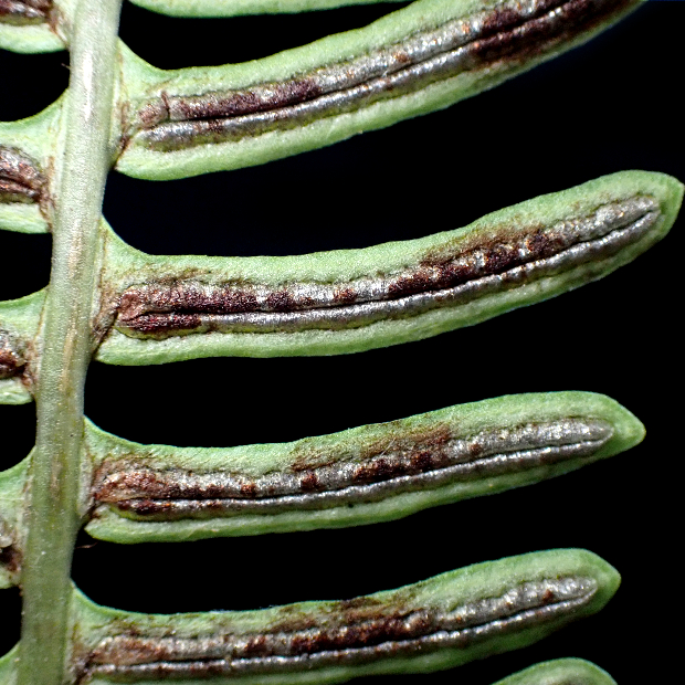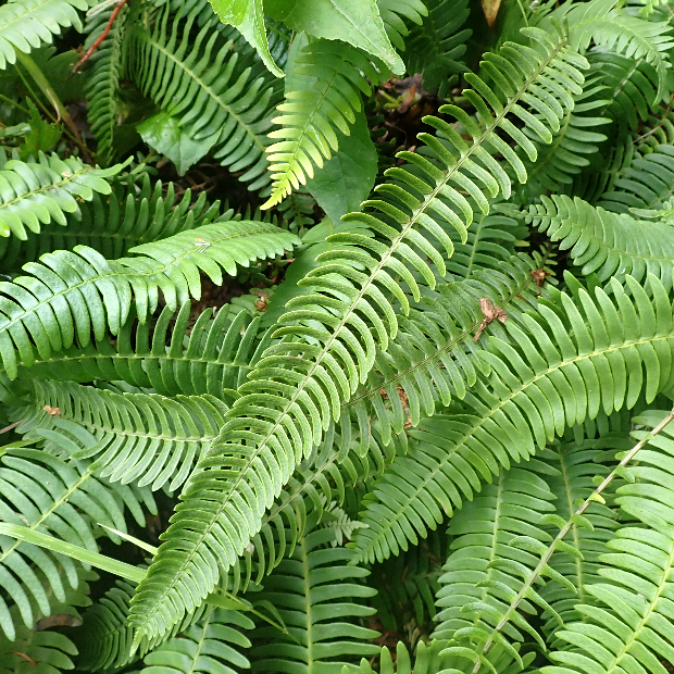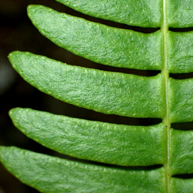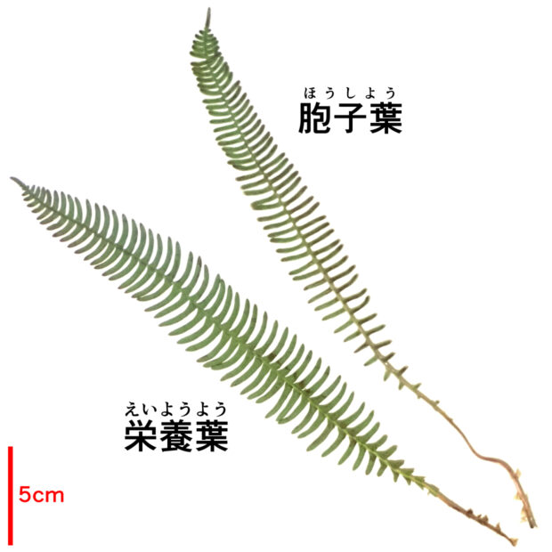 山の斜面に葉を垂らしていることが多いシダ。 より普通に見られるシシガシラに似ていますが、 胞子葉を垂らすこと、 葉柄の鱗片が幅広いことなどが違いです。 筬(おさ)は織物を織るときに使う道具のことで、 葉の形がこれに例えられました。 日本固有種です。