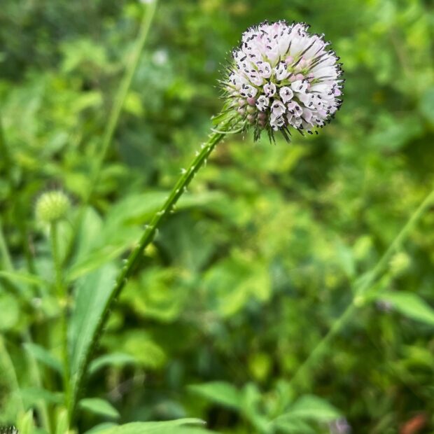 オオハンゴンソウの花は黄色、 ナベナの花は薄紅紫色で、 見分けがつきます。