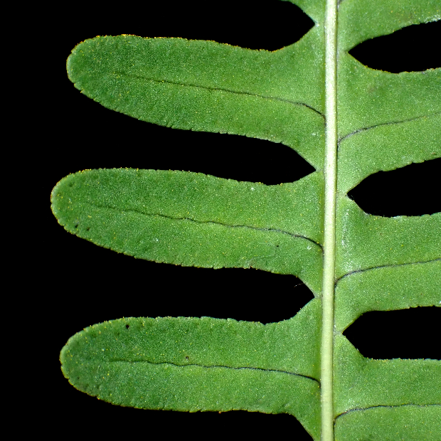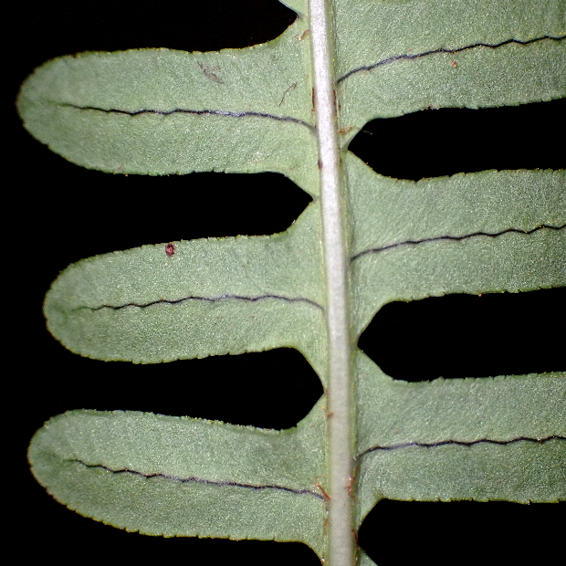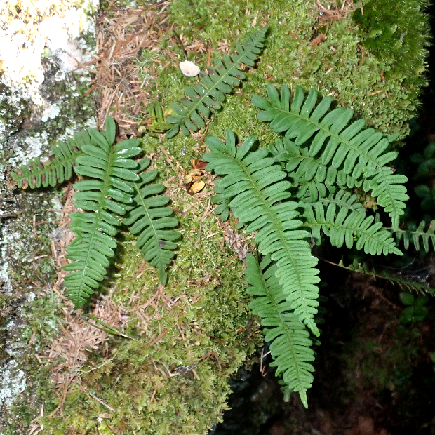 蝦夷(えぞ)の通り北海道に多いシダで、 本州での分布は限られます。 葉は厚めでUの字形に深く切れ込み、 葉裏に大きな丸い胞子のう群をつけます。 より普通に見られるオシャグジデンダに似ていますが、 葉裏に毛はなく、 乾燥しても葉を曲げません。