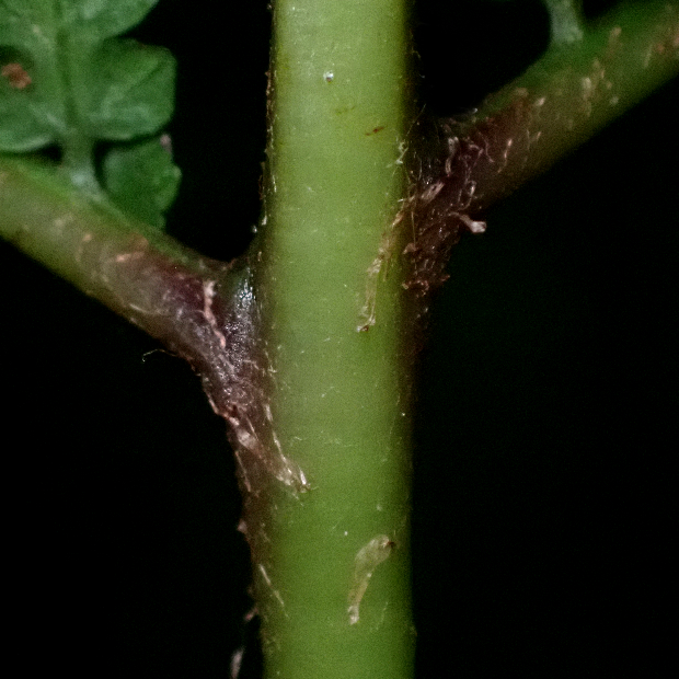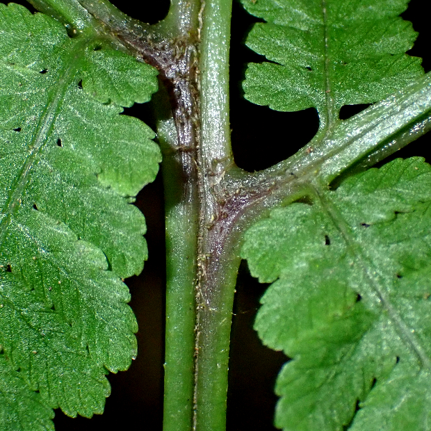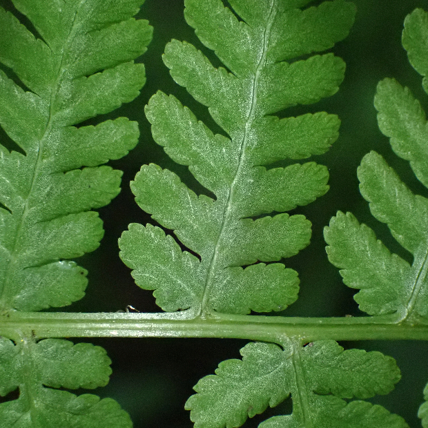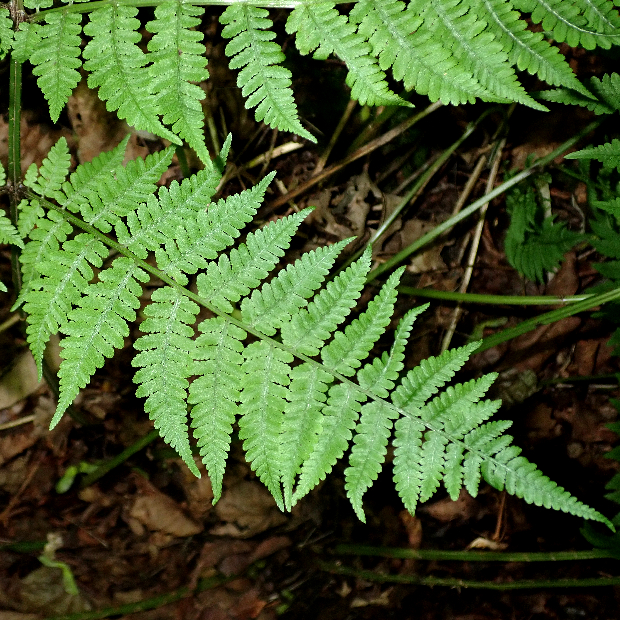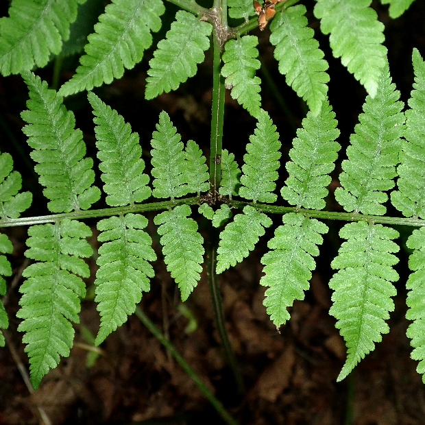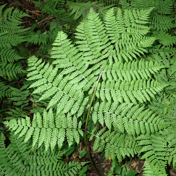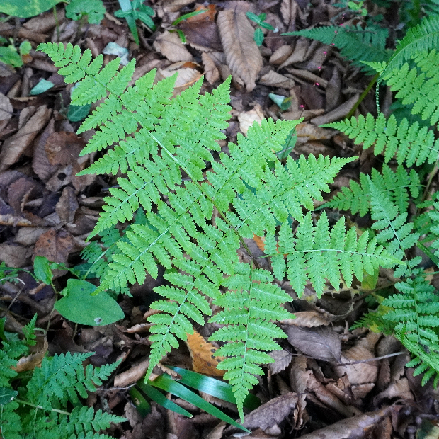 涼しい山地に生える、 やわらかくてみずみずしいシダ。 シケチシダに近縁で、 表の葉軸上に肉質の突起がある、 胞子のう群に包膜がないなど共通の特徴をいくつかもっています。 本種は葉形が三角形に近く、 羽片の切れ込みがより深く、 胞子のう群が円形または楕円形になります。 一本ワラビという変わった名前は埼玉県の方言に由来しているのだとか。