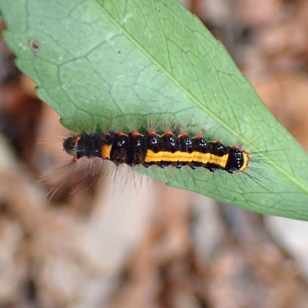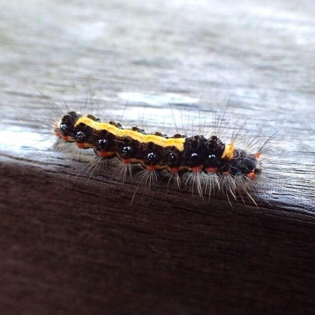 幼虫に毒のある毛(毒針毛)があるので触らないでください。 卵、 繭、 成虫にも毒針毛が付着しています。 刺さると痛みとかゆみがあり、 皮膚炎をおこすことがあります。 刺さった場合は、 粘着テープで取り除き、 流水で洗い流してください。