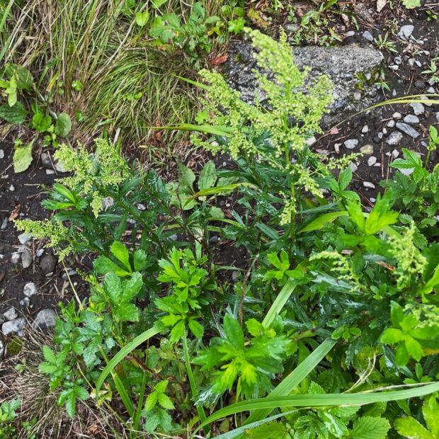 ヨモギとよく似ていますが大型で、 葉に毛がありません。 山道などに多く生えます。 花が咲いていないように見えることからオトコヨモギと名前がつきました。 カゼ,咳,口内炎,できもの,湿疹,黄疸などの薬として全草、 活用される優れものです。