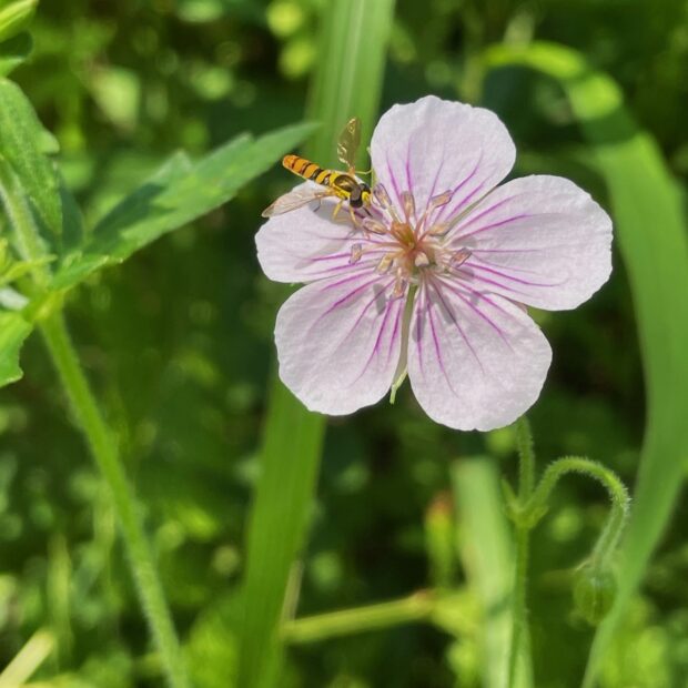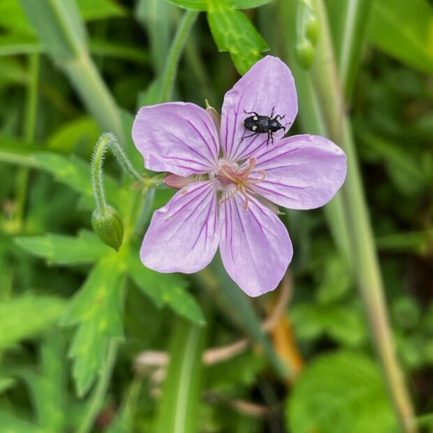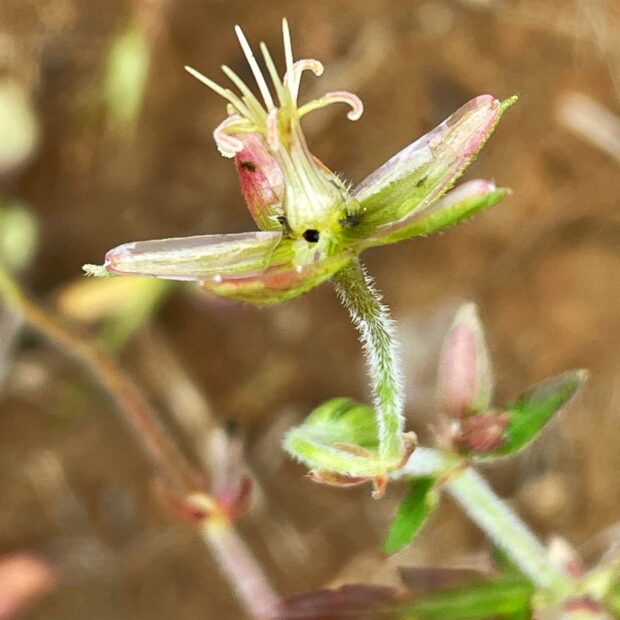花は茎頂や枝先に仲良く、 2個ずつ咲く。 周りの草に負けないように花柄を伸ばす様子がかわいらしい。
