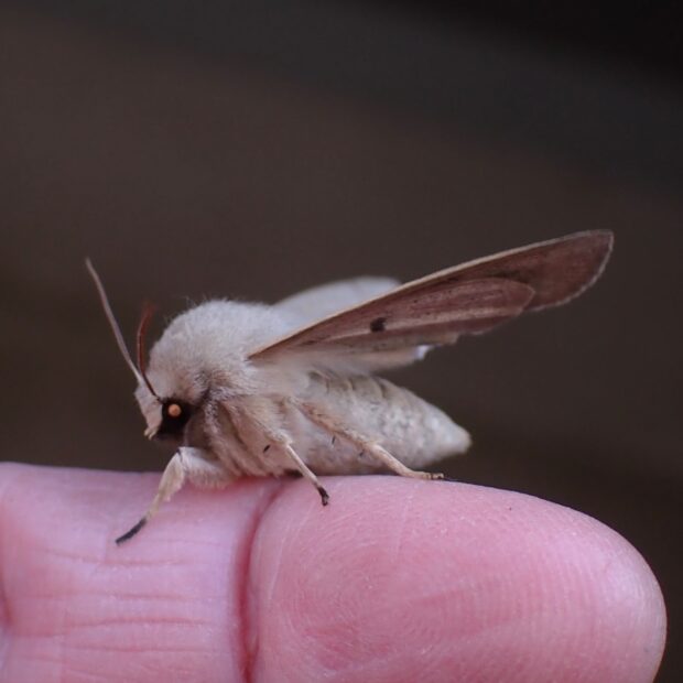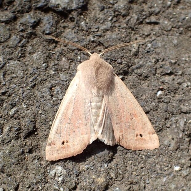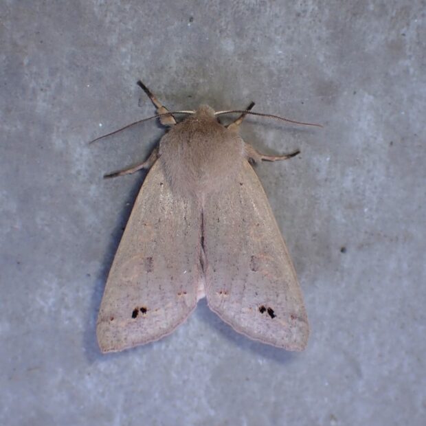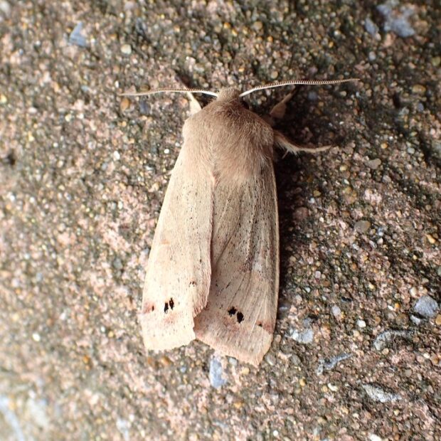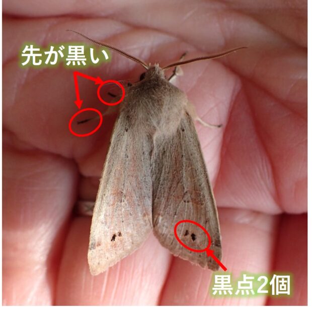 早春に現れるヤガ科キリガの仲間。 キリガの仲間は早春や晩秋に現れるものが多く、 これは「春キリガ」と呼ばれる仲間です。 前ばねの2個の黒点が特徴ですが、 消失しているのもいます。