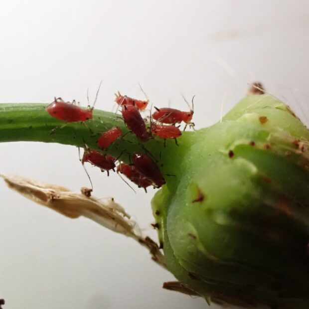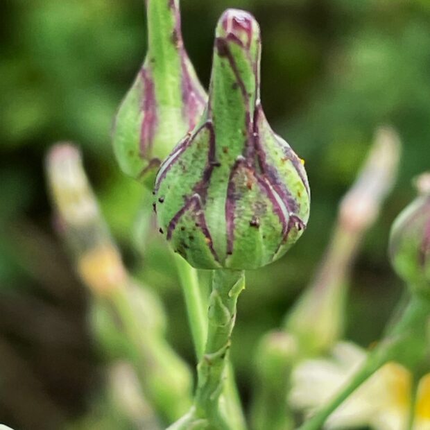 2.蕾の基部、 ネバネバしているか、 を触ってみよう。