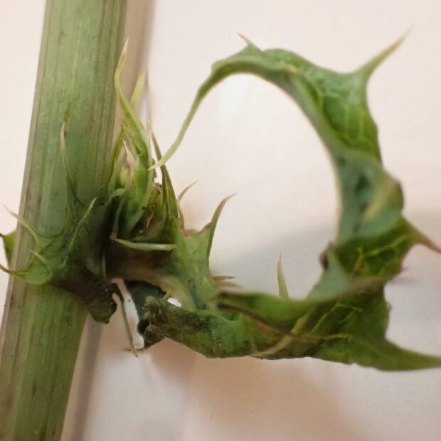 1.花が咲いている上部の葉と、 茎の一番下の葉のどちらが柔らかいか、 痛いか、 確認してみよう。