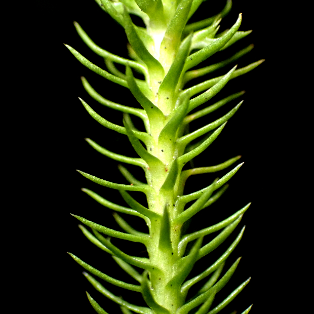 深山の岩によく生えているかわいらしいシダ植物。 より身近なトウゲシバに似ていますが、 茎も葉もより細くて、 葉のフチにはギザギザ(鋸歯)がありません。