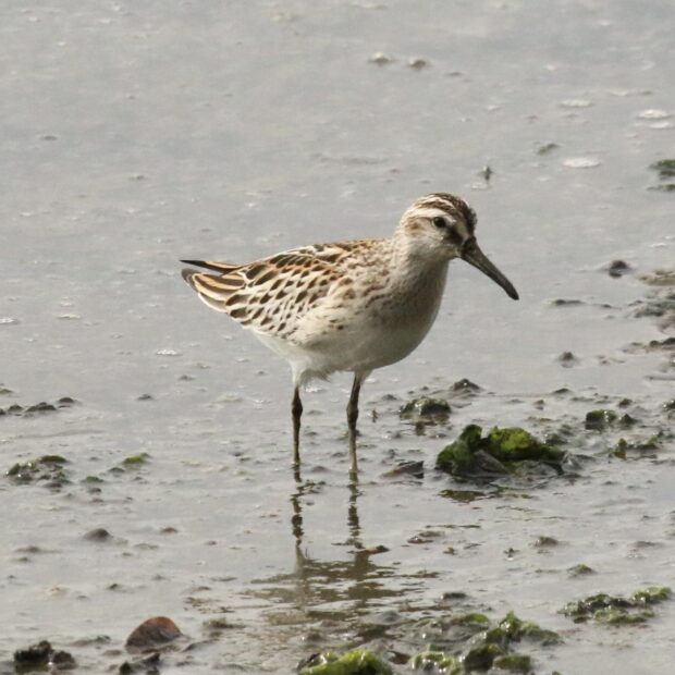 旅鳥として、 水田や干潟、 河口などにやってきます。 一羽か小群で生活し、 浅場を歩きながらゴカイや貝類を食べます。