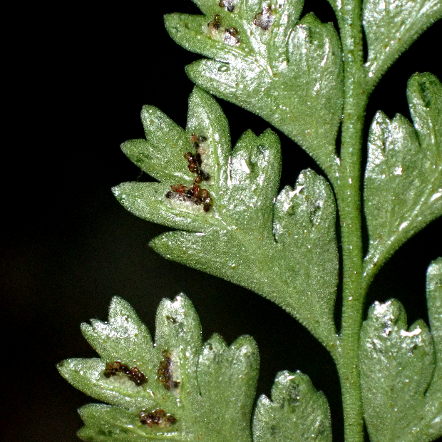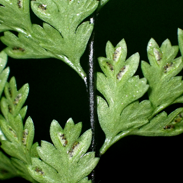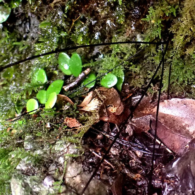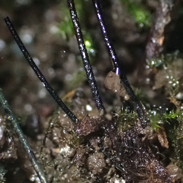 日本では高知県にしか生えていない小さめのシダ。 黒鉄(くろがね)に例えられた黒色の長い葉柄がよく目立ちます。 同じような場所に生えるクモノスシダとは雑種を作ります。