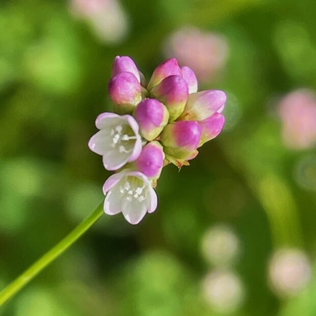 用水路、 小川などのへりにピンク色の花が群れて咲きます。 姿が作物のソバ(蕎麦)に似て、 田んぼまわりの溝などに多いことから、 ミゾソバ(溝蕎麦)と命名されたといわれています。