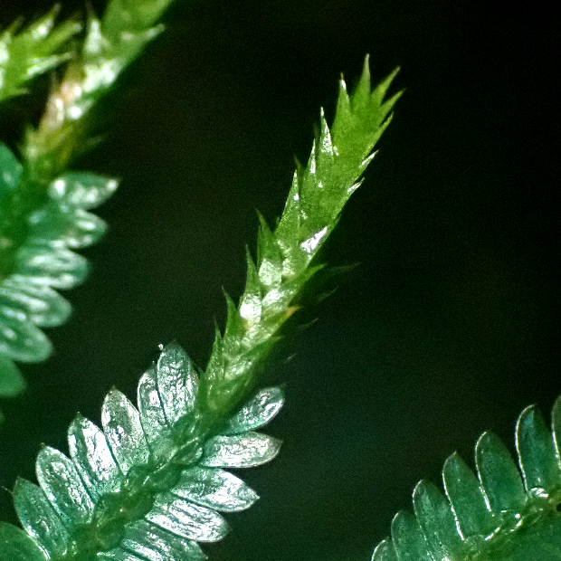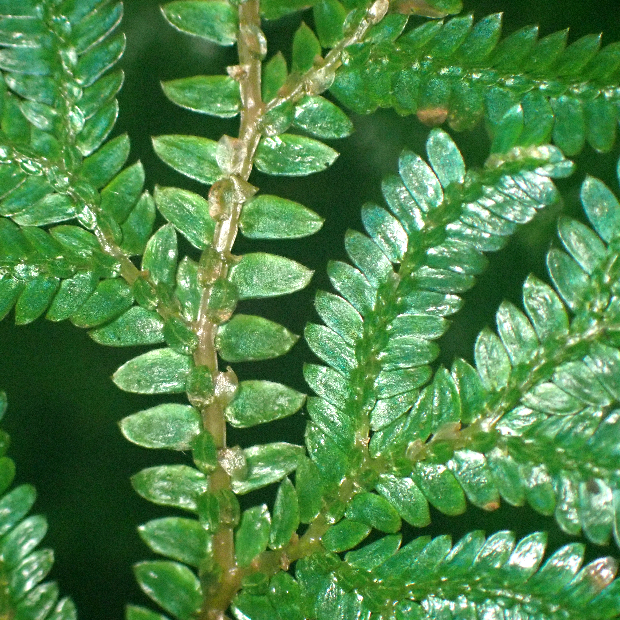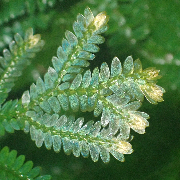 紺色の輝く葉がとてもきれいな中国原産のシダ植物です。 日本には明治初期に入ってきたといわれており、 栽培株から野生化したものが日本の暖かい地域でよく見られます。 園芸の世界ではレインボーファンと呼ばれて親しまれています。