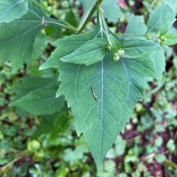 庭一面にはびこり、 ひっつき虫として嫌がられていますが、 中国では全草を薬用にするようです。 動脈硬化や脳溢血の予防などに役立つとして、 栽培を推奨する市町村もあります。 また、 葉をゆでて水に曝し、 食用にします。
