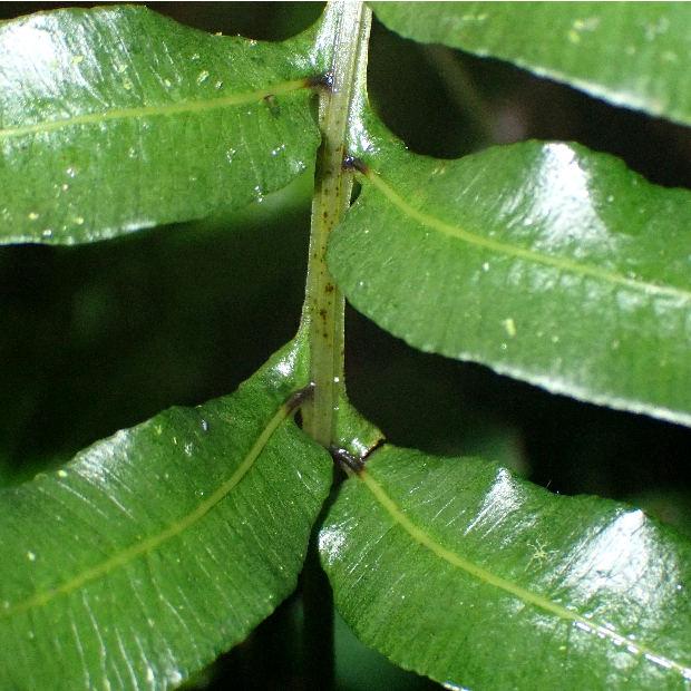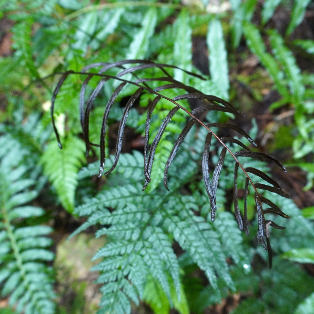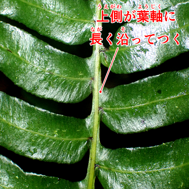 太平洋側の暖かい地域に多いシダです。 キジノオシダに似ていますがより小さめで、 光合成をする葉の先はだんだんと細くなり、 羽片基部は葉軸に長くつきます。 高砂は日本で用いられていた台湾の古い呼び名です。