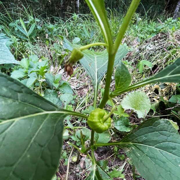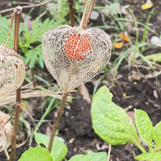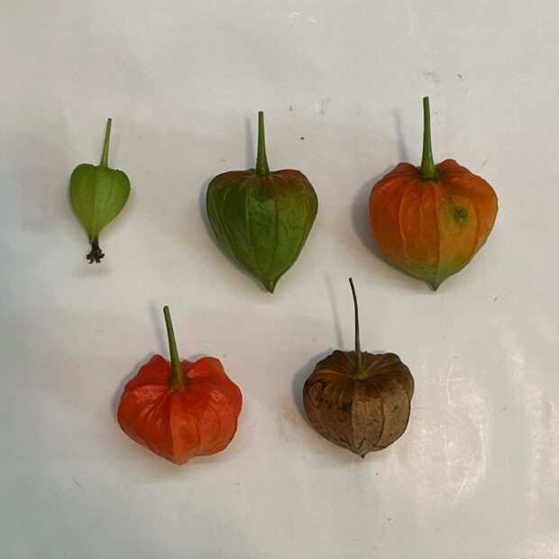 黄色い花が咲く頃、 全国で「ほおずき市」が開催されます。 花後、 ガクの部分が発達して、 果実を包み袋状になります。