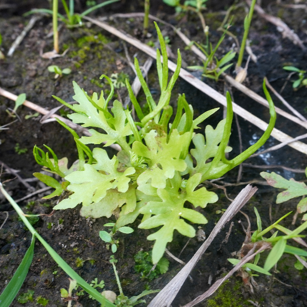 稲刈り後の田んぼで見ることが多い水生シダ。 葉は黄緑色でみずみずしく、 やわらかいです。 鹿の角のような葉から胞子を飛ばします。 ワラビとは別のグループのシダですが、 食用にされることもあるのだとか。