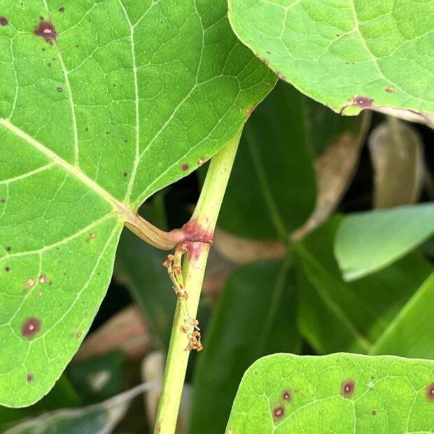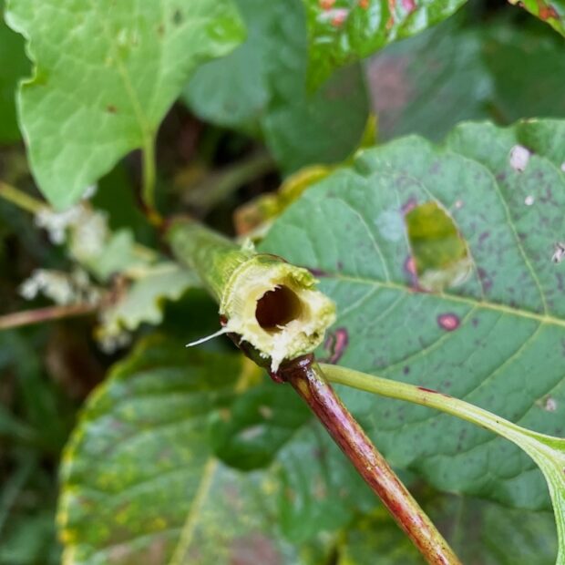 日本では、 崩壊地などの緑化のホープですが、 天敵のいないヨーロッパや北アメリカに入り強害草になっています。 イギリス政府はイタドリを駆除するため、 天敵の「イタドリマダラキジラミ」を輸入することを決めました。 輸入するに先立ち、 イタドリマダラキジラミの生態が徹底的に調査され、 この昆虫はイタドリの葉や茎のみを食べて、 イギリス在来の植物には何の危害もあたえないことが決め手となりました。