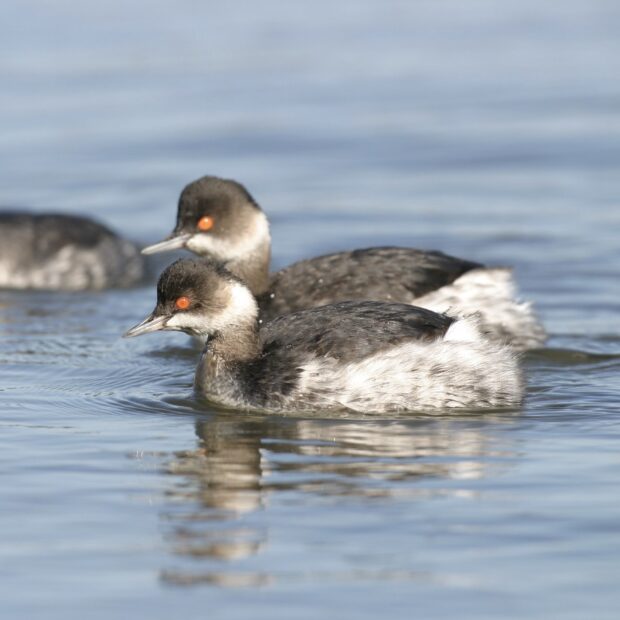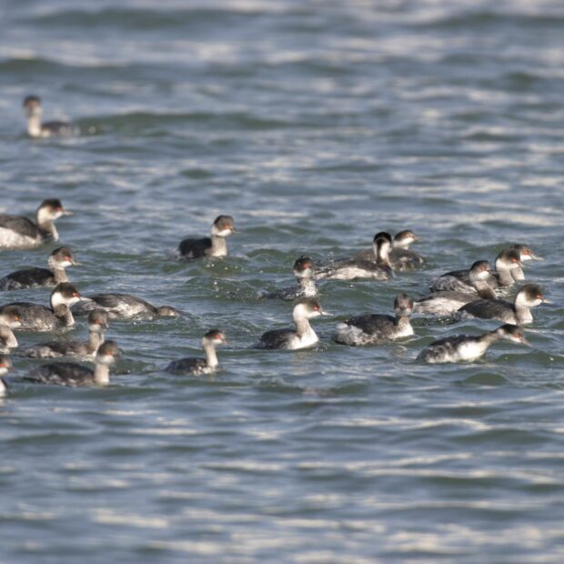 群れで行動する小型のカイツブリ