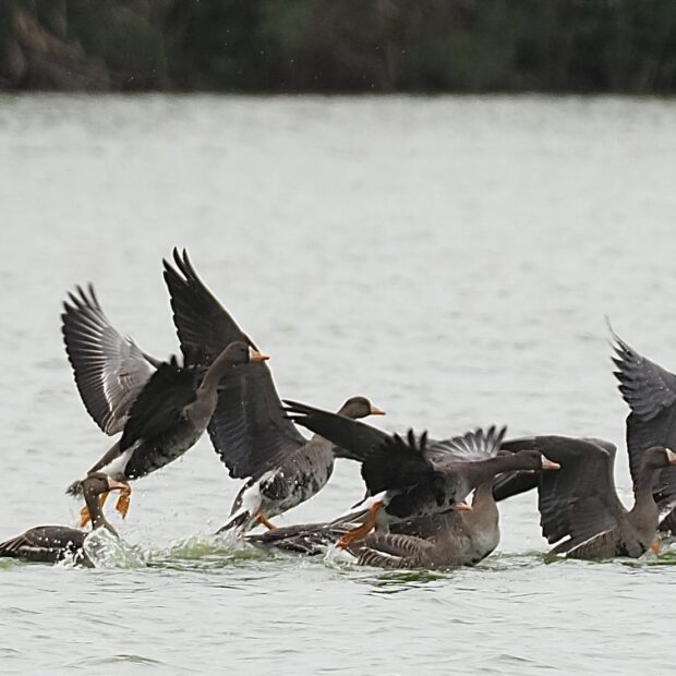 嘴はピンク色で、 根元が白いろです。 飛ぶと腹部の黒い模様が目立ちます。 生活環境が似ているヒシクイとは腹部の模様や嘴などで見分けることができます。