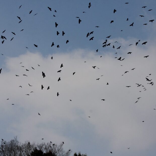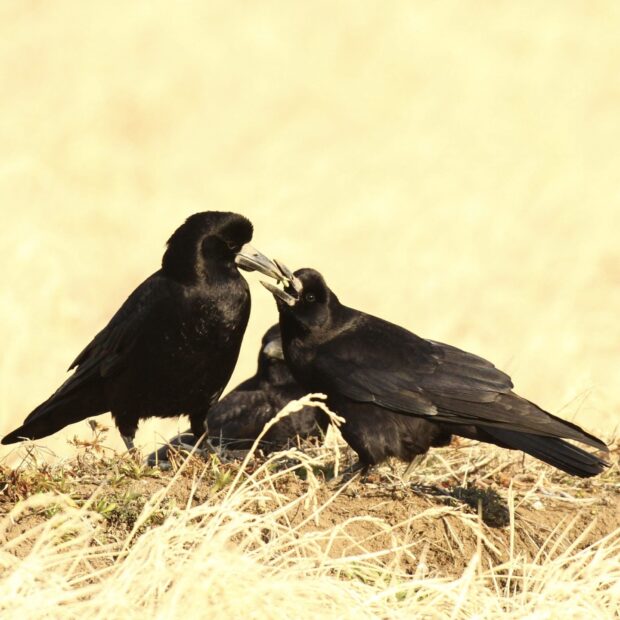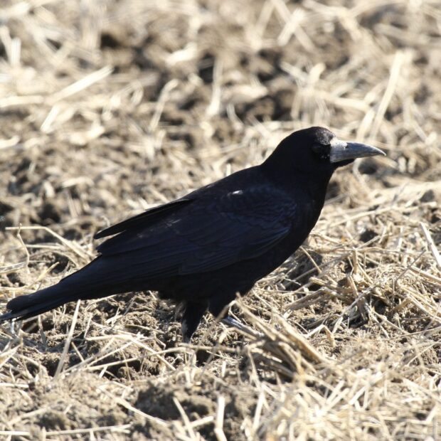冬鳥として主に農耕地や草原などにやって来る渡り鳥のカラスです。 かつては、 九州などに冬鳥として渡ってきていたのですが、 今では分布域を広げて全国的に見ることができます。