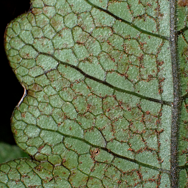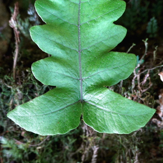 暖かい地域に生えるロケットのような形のシダ。 名前の通り、 葉裏の葉脈が網状で目立ち、 その網目に沿って茶色い胞子のうがつきます。 似た仲間がほとんどない(屋久島のジャコウシダくらい)なので見分けやすいです。