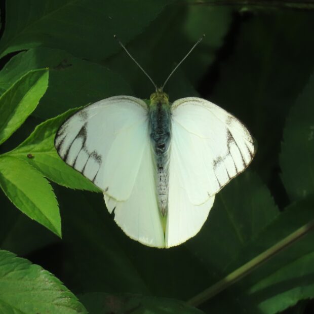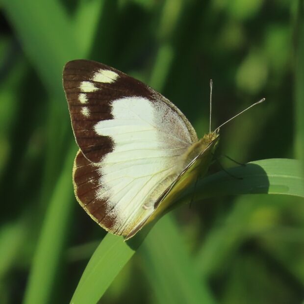 シロチョウの仲間。 明るい林縁などを敏速に飛び、 よく花にやって来ます。 名前は研究者の波江元吉氏に敬意を表し名づけられました。 もともとは八重山諸島のチョウでしたが、 今では沖縄本島の公園などで普通に見られます。