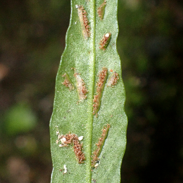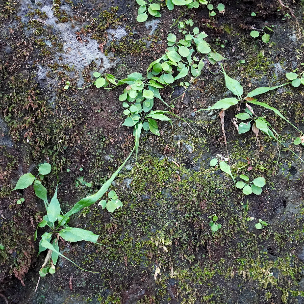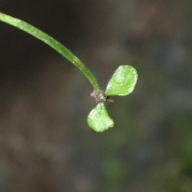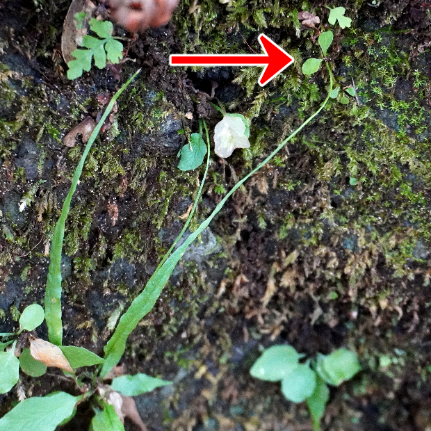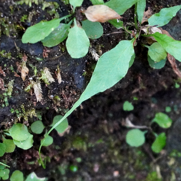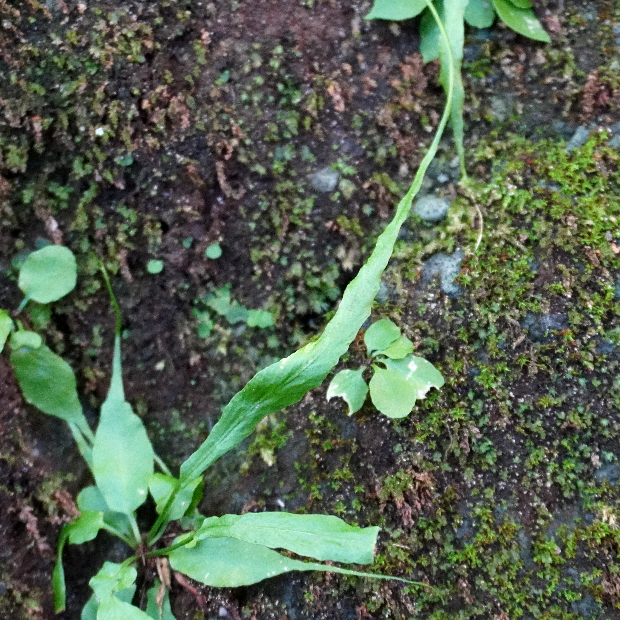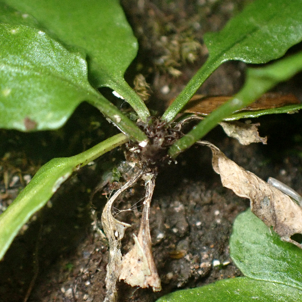 クモノスシダは英名で「Asian Walking Fern」、 直訳してアジアの歩くシダといいます。 北米産の近縁種はそのまま「Walking Fern」。 葉先から新しい株、 その葉先からまた新しい株というように次々に生える姿を歩くことに例えたのでしょうか。