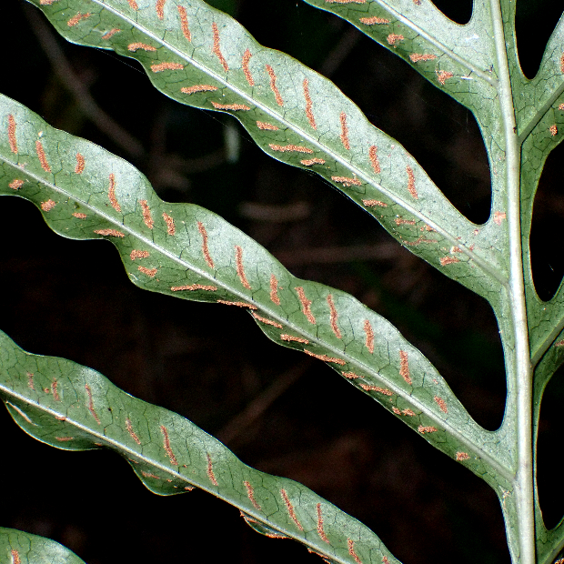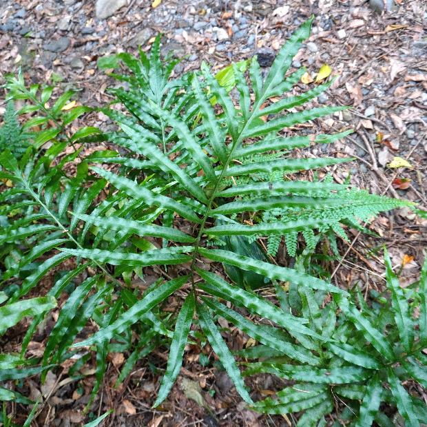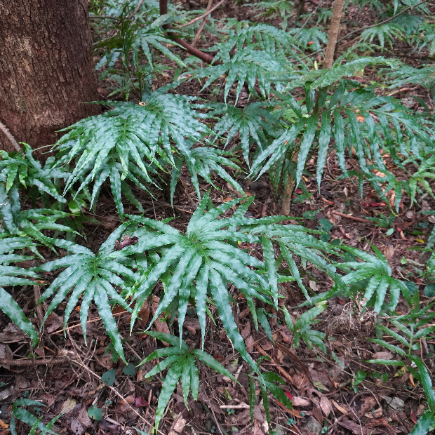 大きなヒトデのようなシダ。 近い仲間のイワヒトデよりも南方に分布してより大きくなるほか、 羽片の数が多いこと、 葉脈がよく見えることなどが違いです。 近縁種とは雑種を作ります。