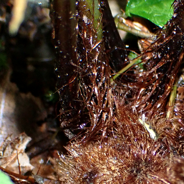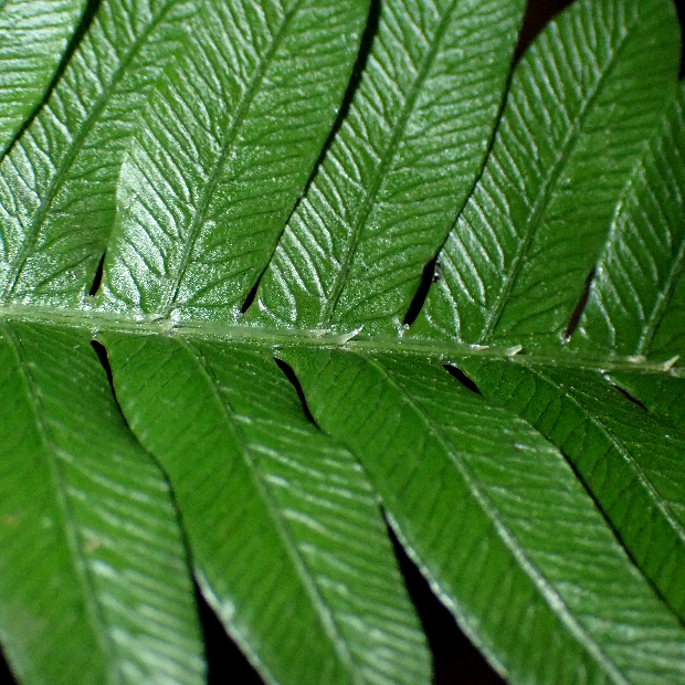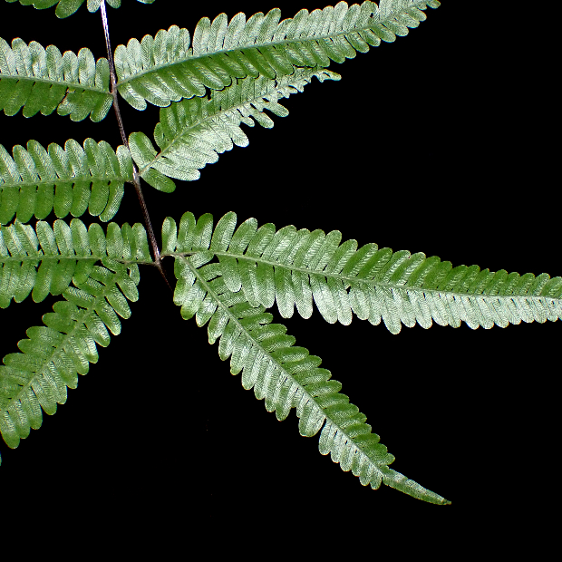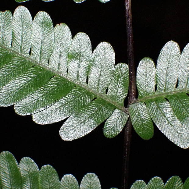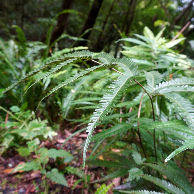 東京都八丈島が由来の南方に生えるシダ。 ハチジョウシダの仲間はどれもよく似ていて見分けるのが難しいです。 本種は葉が厚めで、 羽片の基部が少し縮むこと、 葉柄基部に鱗片が多く残ることなどが特徴です。