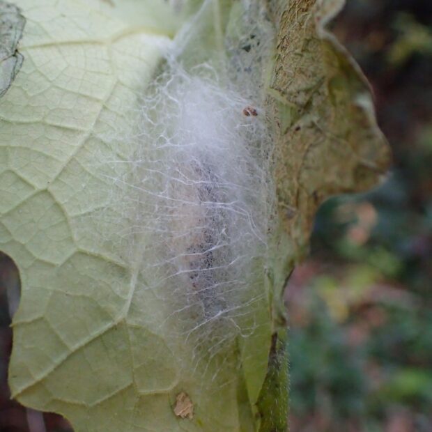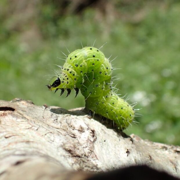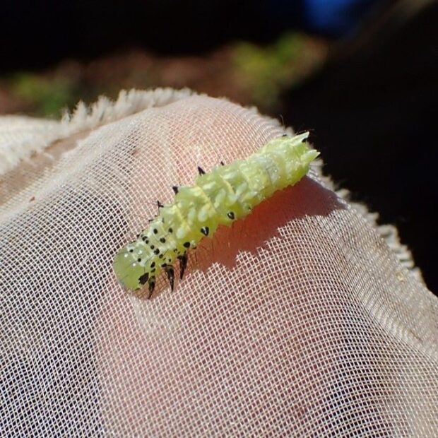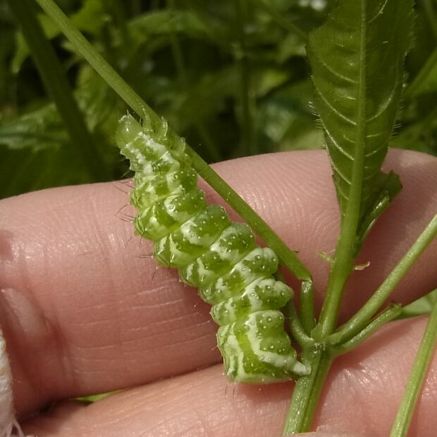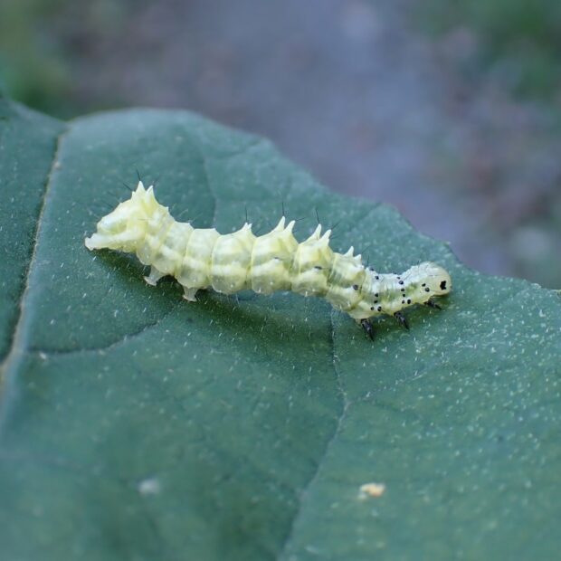 幼虫。 腹脚は2対で、 シャクトリムシのように歩く。