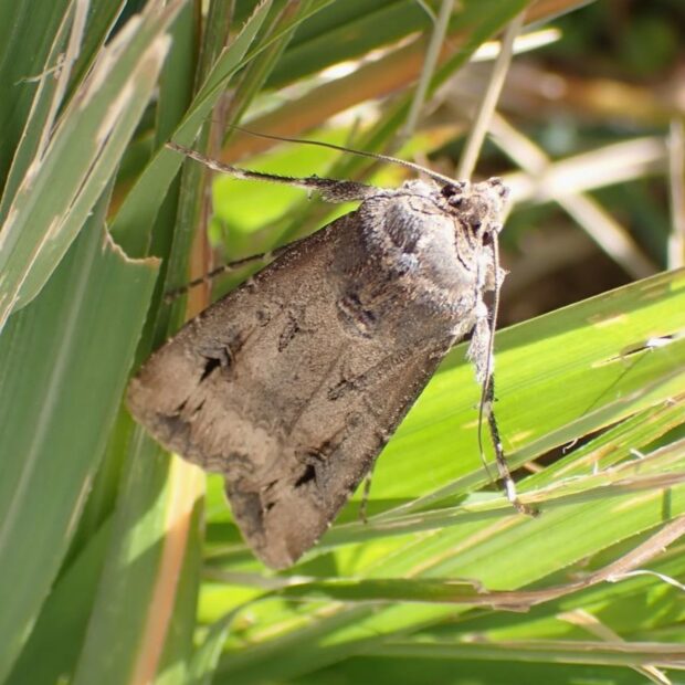 ヤガ科モンヤガの仲間。 幼虫は芝が大好物。 また、 幼虫は野菜苗を根元から切断することから、 ネキリムシと呼ばれます。 幼虫は、 大きくなると縦に掘った孔にひそみ、 夜になると出てきて葉を食べます。