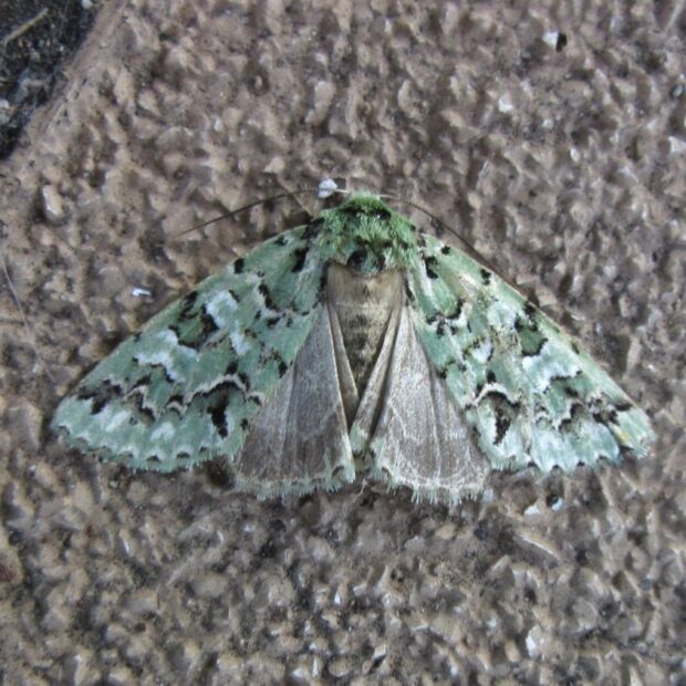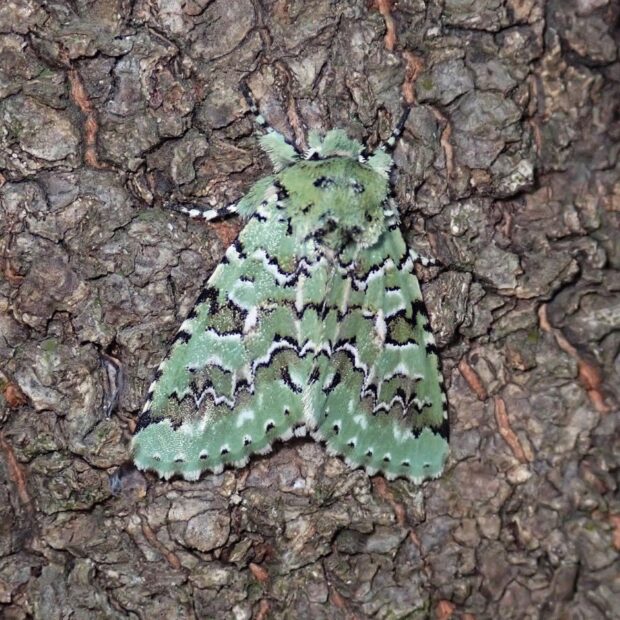 秋に登場!地衣類のような緑色のガ