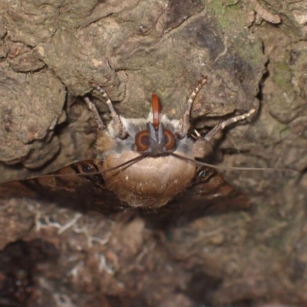 夜行性だが、 昼間に口吻を伸ばし樹液を吸っている。