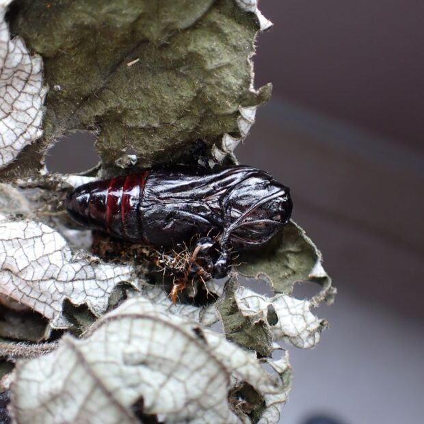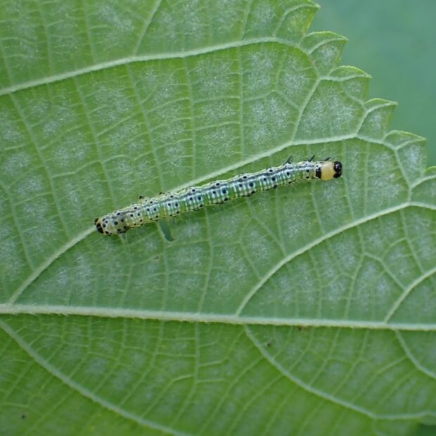 幼虫。 幼虫の頭部は黒と赤がいる。