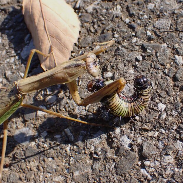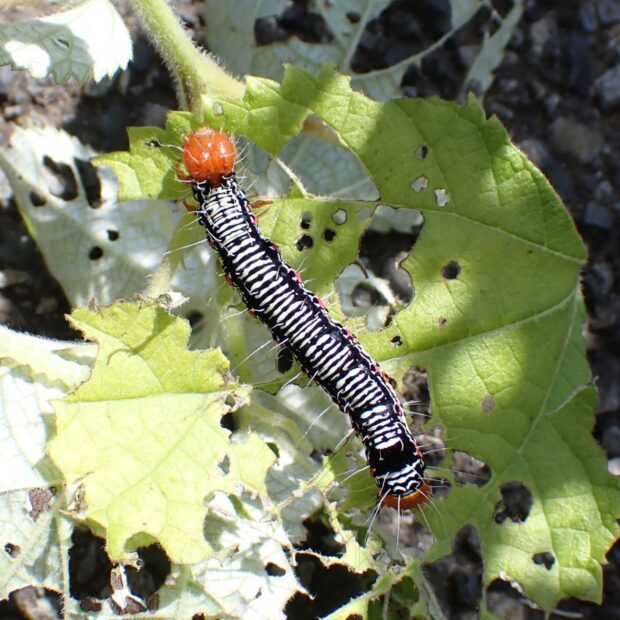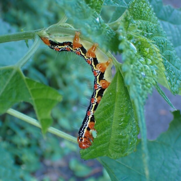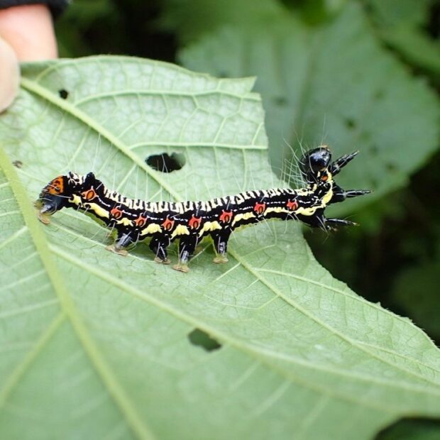 幼虫は怒ると、 体の前の部分を左右に振り回す。