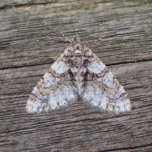 早春に現れるシャクガ科ナミシャクの仲間。 茶色から緑色まで、 色や模様はいろいろで、 変異に富みます。 雑木林などで普通に見られます。 夜は明かりにやって来ますが、 日中も見られます。