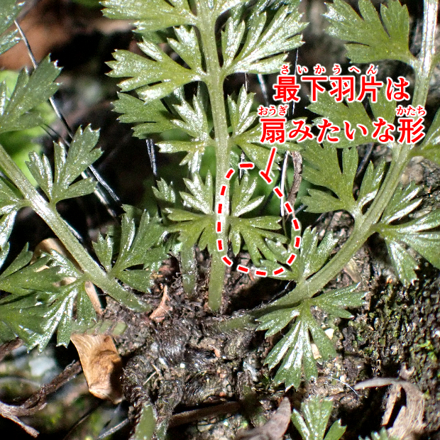 岩場に生える小さめのシダ。 似たコバノヒノキシダよりも濃い緑色で厚くて光沢があり、 一番下の羽片が扇のような形になります。 名前の常盤(ときわ)は一年中緑色の葉をつけていることに由来します。 トラノオはそのまま虎の尾に似ていることにちなみますが、 そうは…見えないかも?