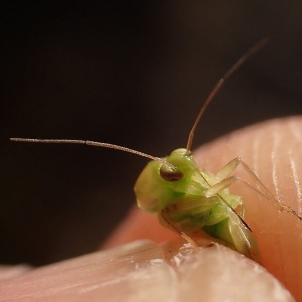 複眼は白っぽい。