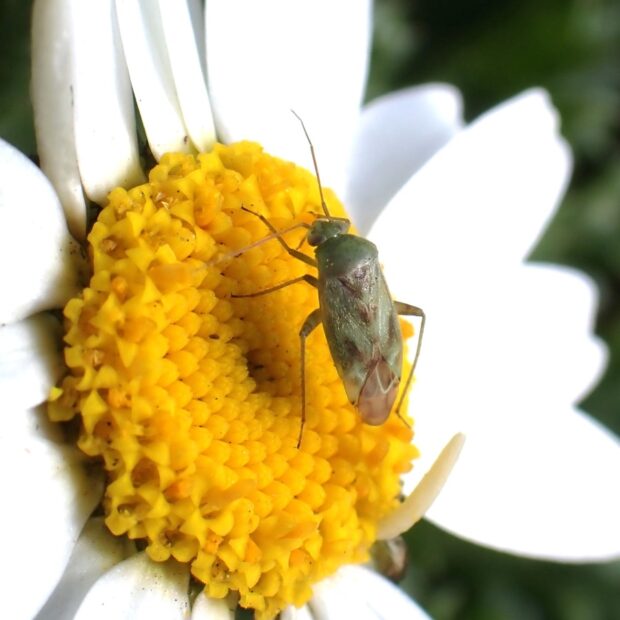 真冬の暖かい日、 マーガレットの花にやって来て、 蜜を吸っているようだ。
