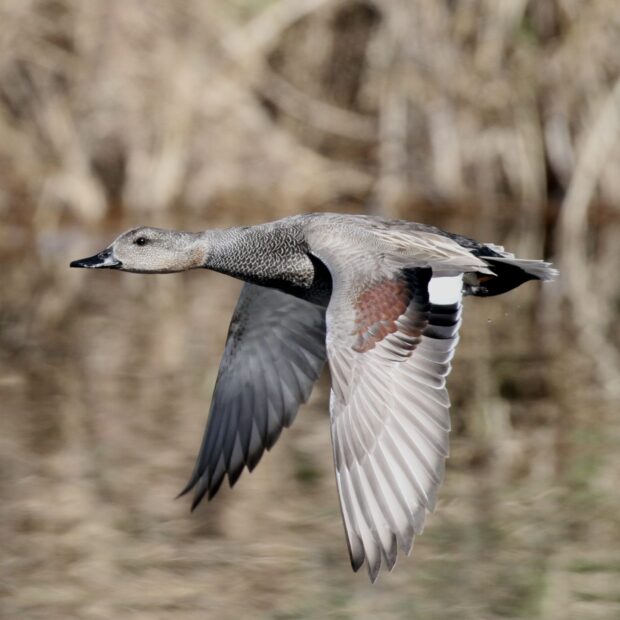 オスの胸には鱗のような模様があり、 体色は全体的に灰色です。 翼を広げると茶色い模様が目立ちます。