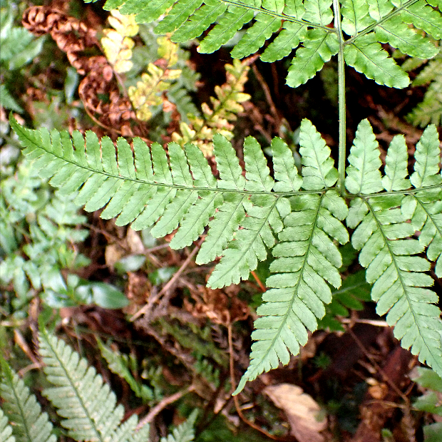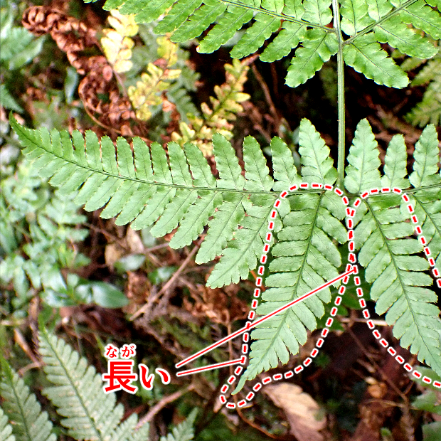 暖かい地域に生えるシダで、 日本での分布は限られます。 葉先は急に細くなり、 葉の一番下の2本の小羽片は特に長くて八の字に見えます。 名前の高砂は日本で用いられていた台湾の古い呼び名です。