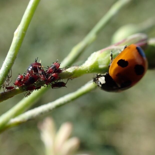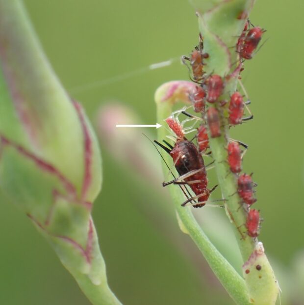 アキノノゲシにつく赤と黒のアブラムシ