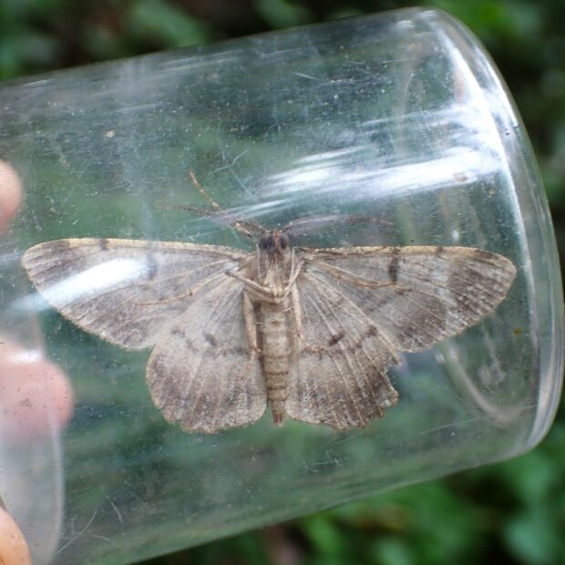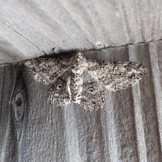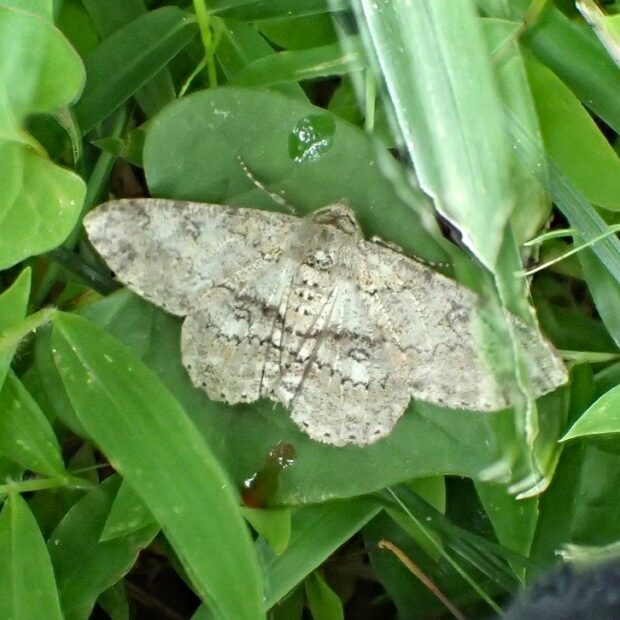 はねの色や模様はいろいろ、 個体変異が大きいエダシャクの仲間で、 普通に見られます。 前ばねと後ばねにいびつな形の紋やギザギザの線があります。 蛹で越冬し、 年3~4回発生します。