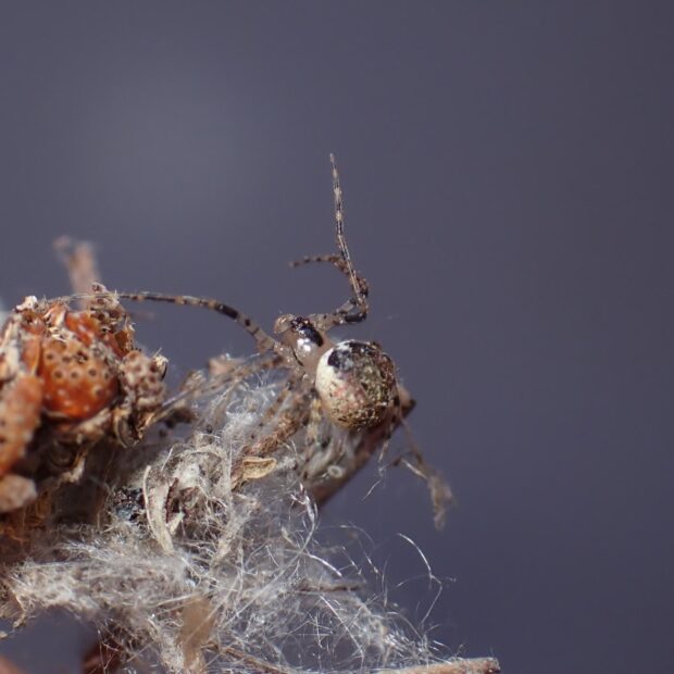 クモを襲う小さなクモ